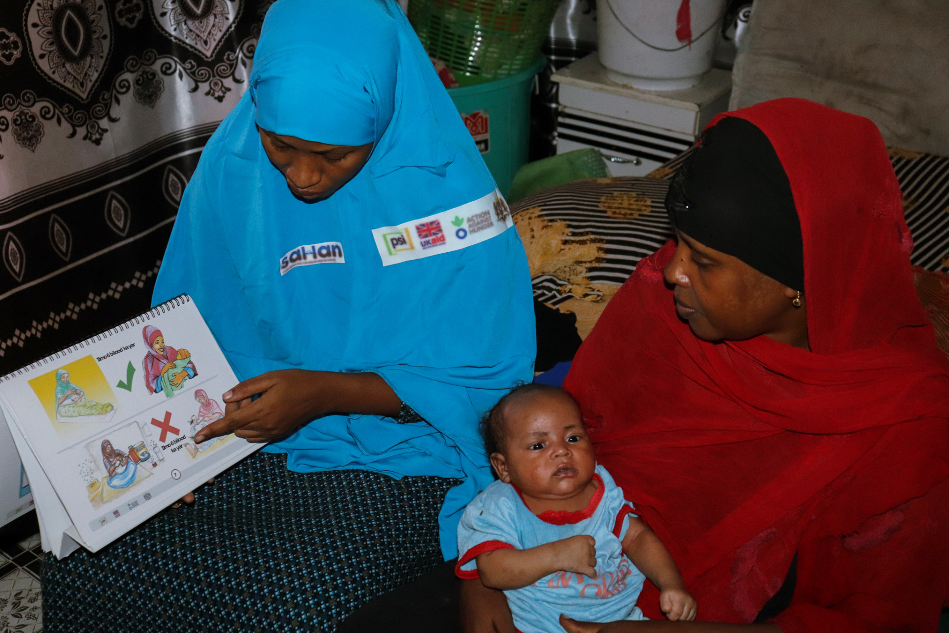 When Amina was six months pregnant, two committed influencers – one also named Amina and the other named Fardosa – visited her home. As the three women talked, Amina’s beliefs about health facilities started to change.