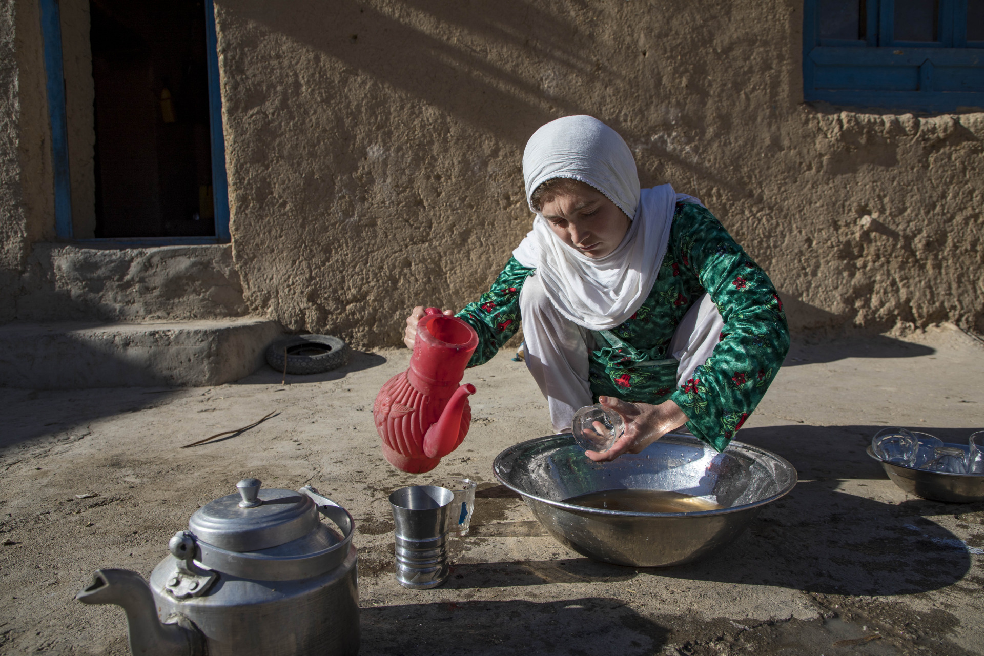 Bibi Afia* lives with her husband and three children – seven-month-old Darya, Gita, and Marwan – in Daykundi province, home to many displaced families who lack access to basic services.