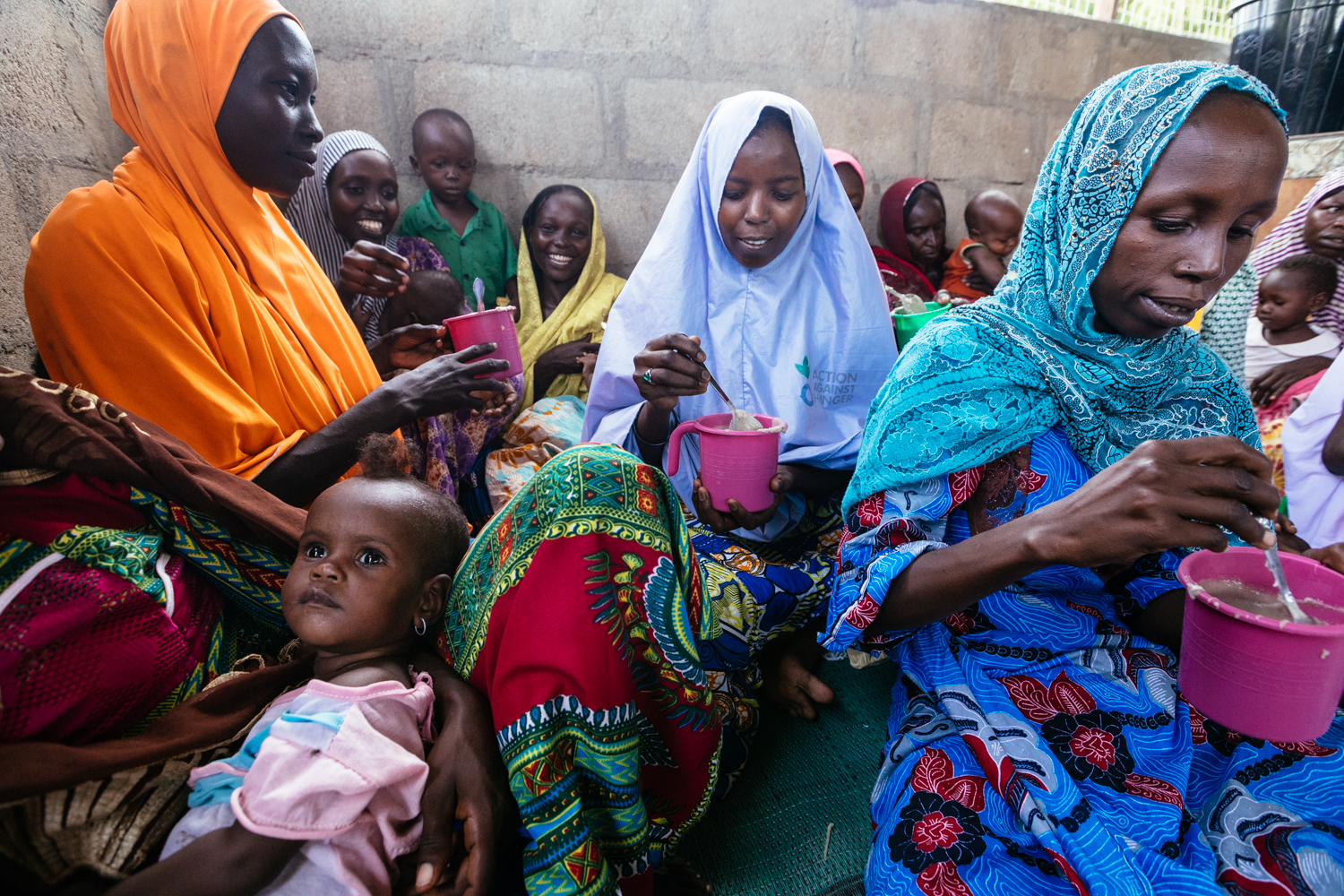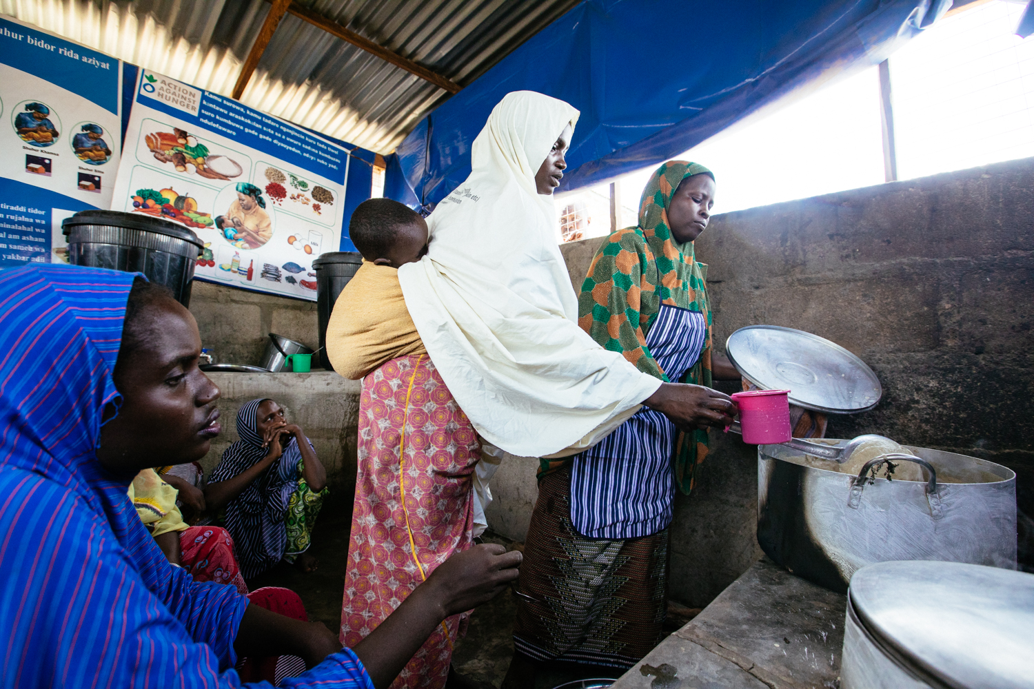 There are about fifteen women in each group of Porridge Moms, an initiative run by Action Against Hunger and supported by the US Government’s Food for Peace program. Every day, they gather together and make nutritious meals for themselves and their young children. As they cook, the mothers learn and share with each other and with Action Against Hunger’s teams about nutrition, healthy childcare practices, and good hygiene. The group receives a monthly stipend to pay for food items and other costs.