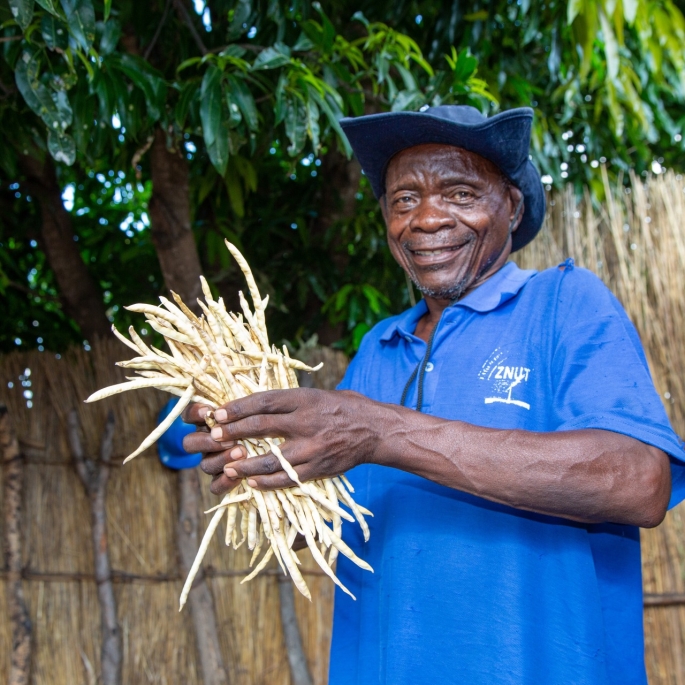 64-year-old Mrs. Makina is a constant inspiration for people across the Western Province. She has built her own successful agriculture business and overseen her farm for 50 years. But the widespread drought in Zambia has threatened Mrs. Makina’s livelihood. She fears for her family’s wellbeing and anticipates a deadly hunger crisis. That’s why she’s partnering with Action Against Hunger to crow drought-resistant black-eyed peas.